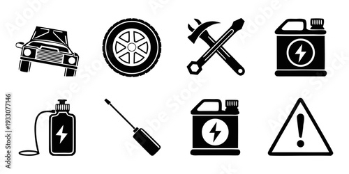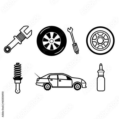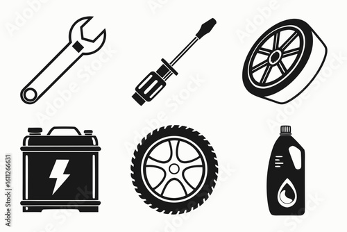 Vektorové sada vintage car Service symboly, ikony izolovaných na bílém pozadí. Černé šablony pro loga a tisk.