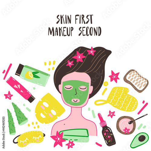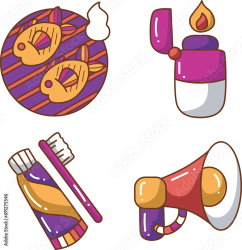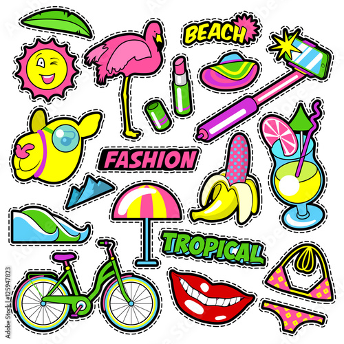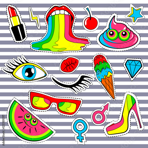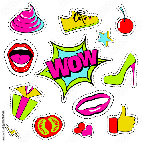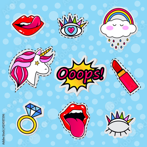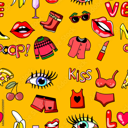 Vektorový ženský make-up a kosmetické 2x2 designové prvky. Rtěnka, řasenka, červenat make-up produkty v pop art retro komiksovém stylu.
