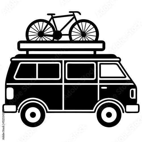 Vektorové vintage cestovní plakát. Ilustrace cestovního autobusu a kola, které na něm stojí v retro pop artovém komiksovém stylu.