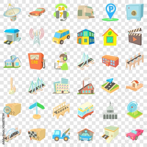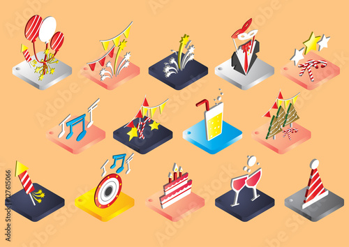 Vodní park vektorové barevné ikony s různými typy skluzavek, bazény, ruské kolo, vířivá vana, Fontána. Aqua park izometrické ploché designové prvky.