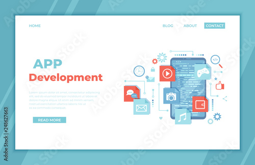 Vektorové webové stránky design šablony. API technologie a vývoj softwaru. Koncepty vstupní stránky pro vývoj webových stránek a mobilních zařízení. Moderní byt ilustrace.