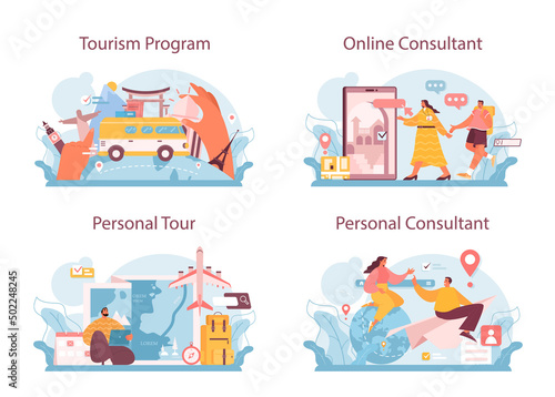 Vektorové webové stránky design šablony. Naplánujte si výlet a jděte cestovat. Plánování trasy a rezervace. Koncepty vstupní stránky pro vývoj webových stránek a mobilních zařízení. Moderní ploché ilustrace