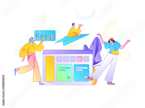 Vektorové webové stránky design šablony. Sociální média mobilní aplikace wireframe. Koncepty vstupní stránky pro vývoj mobilních webových stránek. Moderní byt ilustrace.