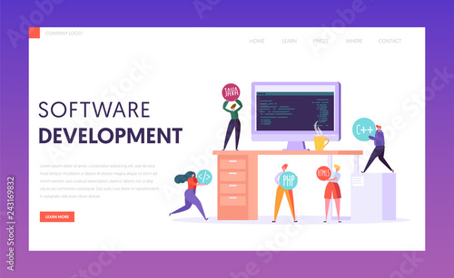 Vektorové webové stránky design šablony. Vývoj softwarových projektů. Tým kodérů spolupracuje. Koncepty vstupní stránky pro vývoj webových stránek a mobilních zařízení. Moderní byt ilustrace.