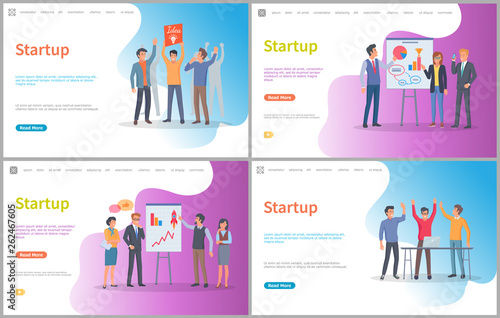 Vektorové webové stránky design šablony. Startup business growth, raketový start, partnerská dohoda, desicion. Koncepty vstupní stránky pro vývoj webových stránek a mobilních zařízení. Moderní byt ilustrace.