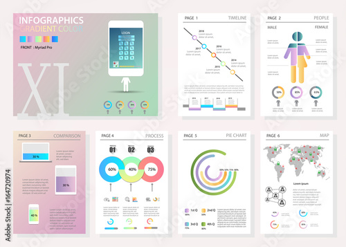 Vektorové webové stránky gradient design šablony. Online digitální mediální obsah. Hudba, video a fotografický obsah. Koncepty vstupní stránky pro vývoj webových stránek a mobilních zařízení. Moderní ploché ilustrace