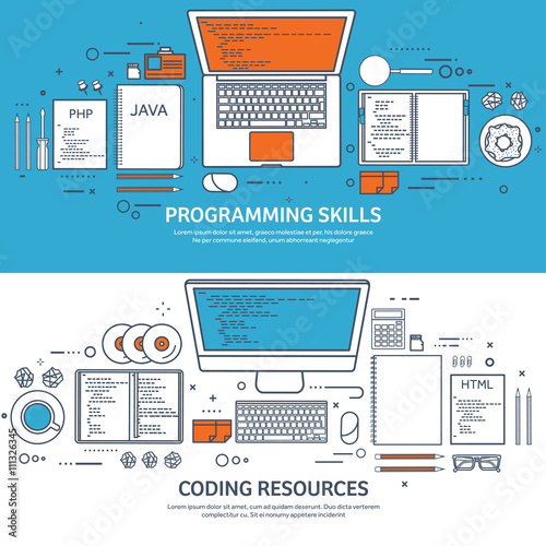 Vektorové webové stránky lineární umění design šablony. Digitální marketing a seo analytika. Obsahový marketing, Průzkum trhu. Koncepty vstupní stránky pro vývoj webových stránek a mobilních zařízení