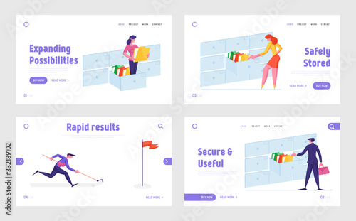 Vektorové webové stránky lineární umění design šablony. Spuštění a spuštění nového obchodního konceptu. Vstupní stránka pro vývoj webových stránek a mobilních zařízení. Moderní ploché ilustrace