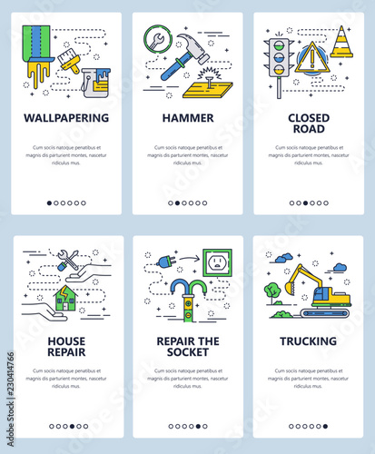 Vektor webové stránky lineární umění onboarding obrazovky šablony. Fintech inovace a blockchain technologie. Odhalování finančních podvodů a budoucnost peněz. Bannery nabídky pro vývoj webových stránek a mobilních aplikací