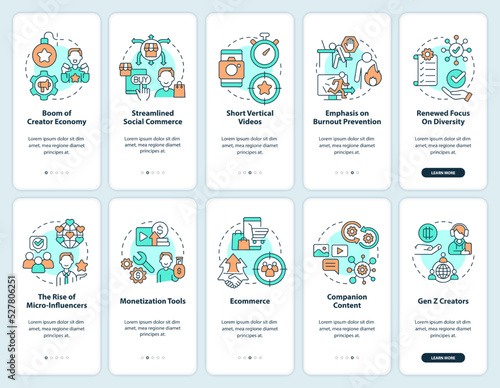 Vektor webové stránky lineární umění onboarding obrazovky šablony. Vzdělávání, čtení knih a získávání nových znalostí. Učení a trénink mozku. Bannery nabídky pro vývoj webových stránek a mobilních aplikací