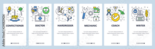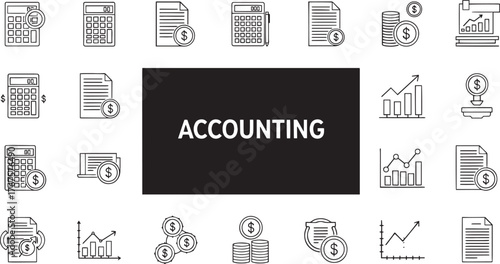 Vektorové webové stránky lineární umění onboarding obrazovky šablony. Účetnictví, daň z příjmu, peněžní investice. Bannery Menu pro vývoj webových stránek a mobilních aplikací. Moderní design ploché ilustrace