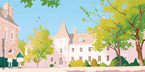 Vektorové Sezónní práce v City Park ilustrace. Muž pracovník charakter péče trávy a rostlin, ořezávání, řezání a terénní úpravy kreslený pozadí. Dobrovolnické komunitní zahradnictví v městské oblasti