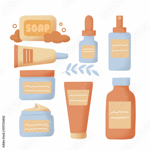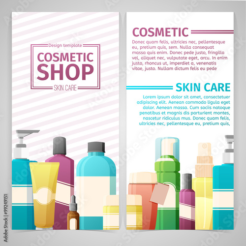 Veganská kosmetika design vstupní stránky, sada šablon bannerů webových stránek, plochá vektorová ilustrace. Žena používající etickou kosmetiku, organickou péči o pleť a vlasové přípravky. Ekologický životní styl.
