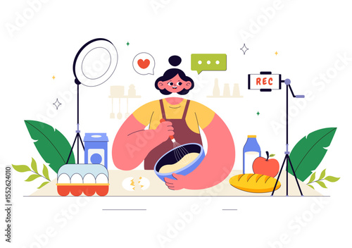 Veganské jídlo a bobule smoothie. Mandlové mléko, ovoce, mixér, krutost bez jídla. Koncept ilustrace. Vektor web design šablony. Vstupní stránka webové stránky ilustrace.