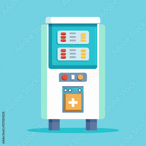 Automat automat set s jídlem a nápoji vektorové ploché izolované ilustrace. Studené nealkoholické nápoje, občerstvení, Rychlé občerstvení, zmrzlina, káva, popcorn maloobchod.