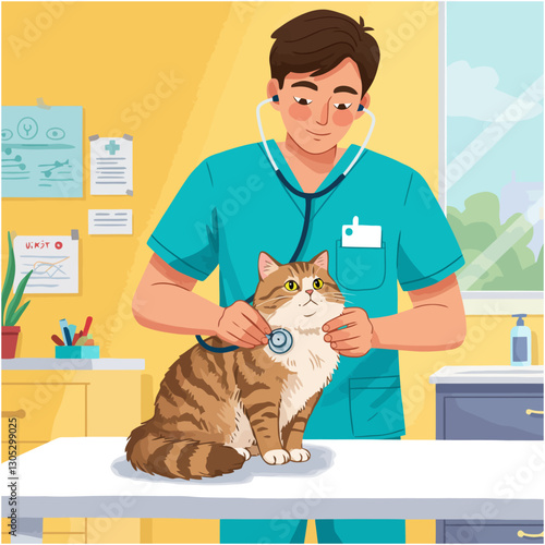 Veterinární klinika lékař zkoumá a ošetřuje psa vektorové ikony izolované pozadí.