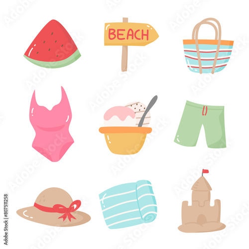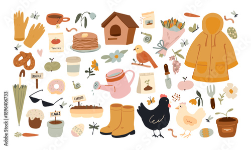 Viktoriánská dáma set, plochý vektor izolované ilustrace. Anglická dáma oblečení a doplňky. Korzet, boty, klobouk, láhev parfému, rukavice, šicí souprava, prsten a krabice.
