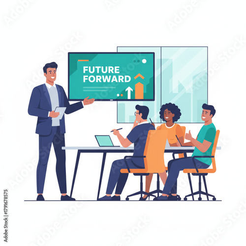 Vektorová ilustrace šťastného právníka nebo obhájce a obžalovaného oslavujícího vítězství v soudním řízení. Plochý design.