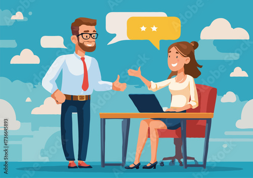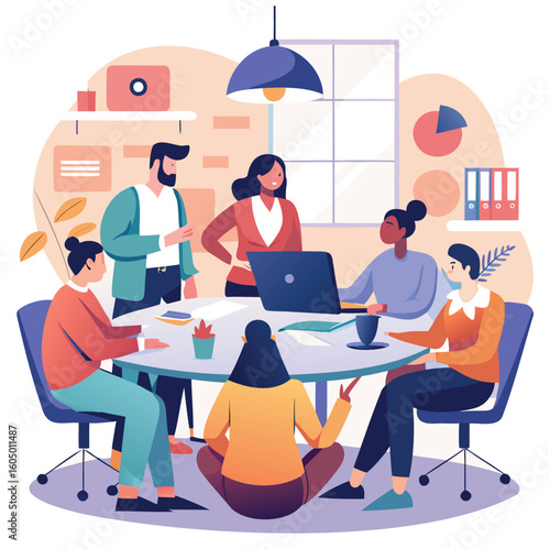 Podnikatelka pořádající online videokonferenci, workshop, setkání z domácí kanceláře sedící u stolu před notebookem, vektorová plochá ilustrace. Práce na dálku, zůstat doma v karanténě, izolace.