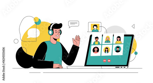 Video lekce, vektorový plochý styl designu ilustrace. Velký tablet s učitelem na obrazovce, malé postavy. Online vzdělávání, e-learning, koncept online školení pro webový banner, webovou stránku atd.