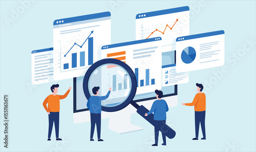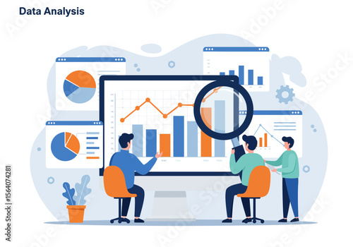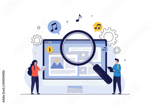 Video lekce, vektorové ploché ilustrace. Velký počítačový monitor s učitelem, malé postavy. Webinář, online konference, distanční vzdělávání, koncept online kurzu pro webový banner, webovou stránku atd.