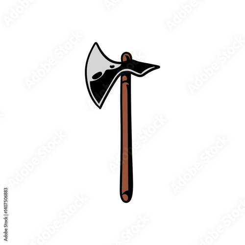 Viking Bitva oboustranný sekera vektor. Středověká zbraň ilustrace. Vintage ocelová čepel ostrý kov válka sekera ikona izolovaných na bílém pozadí