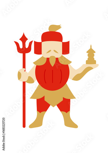Šťastný viking charakter s pivem kreslená postavička vektorové ikony ilustrace. Legrační muž s blond vousy a knír v rohatý helmu drží pivo hrnek a zbraň izolovaných na bílém pozadí