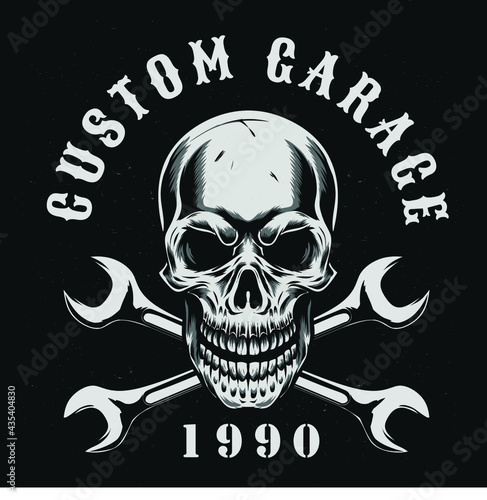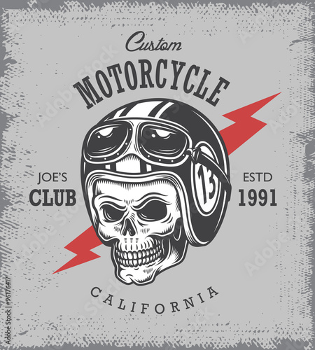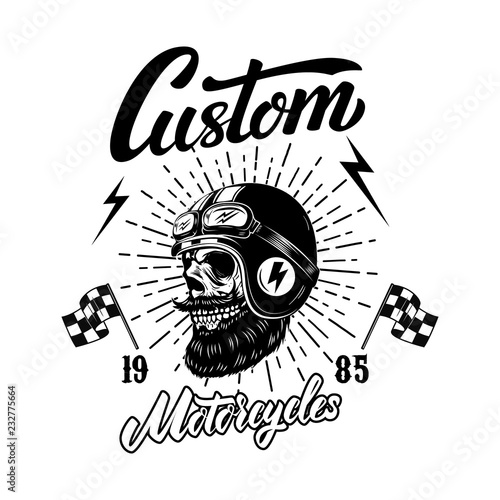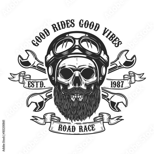 Vintage motocykl tričko vektorové grunge ilustrace. Born to ride, Ride to live, legendární závodní klub motocyklová typografie. Monochromatická vousatá motorkářská lebka v helmě a brýlích.