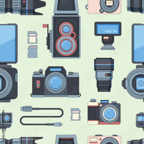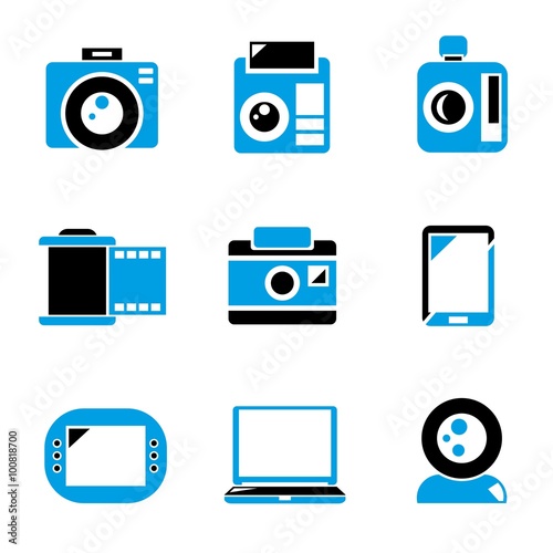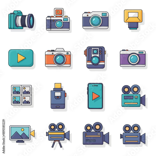 Vintage retro a moderní fotoaparát vektorové ikony set. Izolované digitální a analogové fotograf vybavení a technika ilustrace