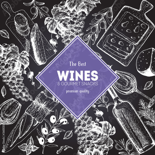 Vintage víno tabule typografie plakát. Vektorové skica ručně kreslené iillustration.