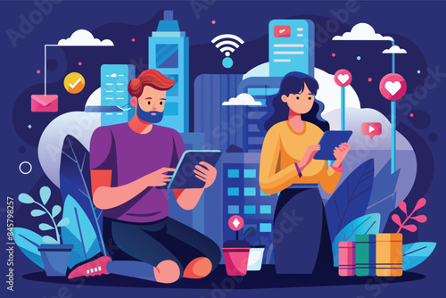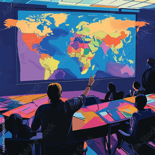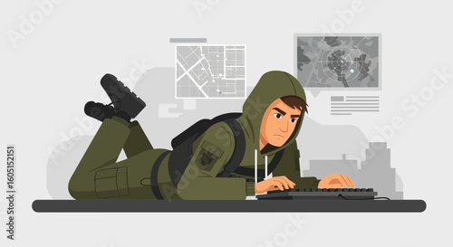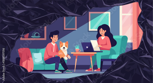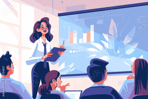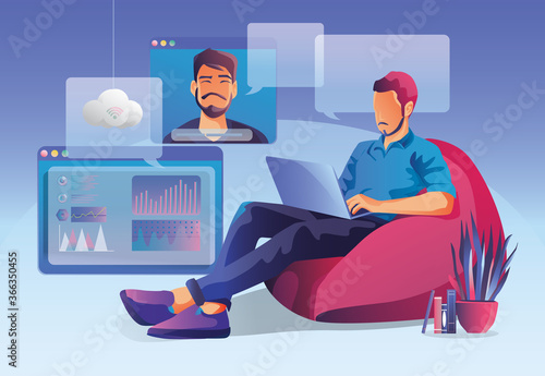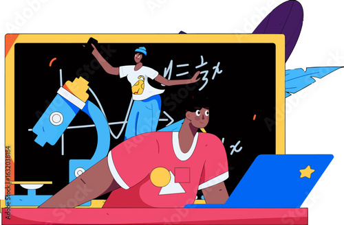 Virtuální on-line promoce koncept vektorové ilustrace. Studenti absolvují videohovorem během karantény koronaviry. Studentka pozdraví své spolužáky v šatech a kloboucích na obrazovce.