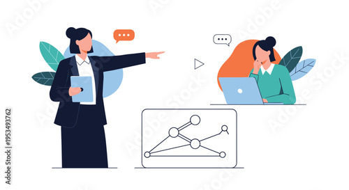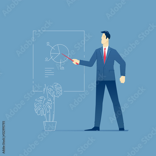 Virtuální realita technologie koncept vektorové ilustrace. Podnikatelé muž a žena nosí brýle virtuální reality stojící vedle tabule a ukazující na grafy obchodních financí.