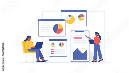 Visagiste služby, vektorový plochý styl designu ilustrace. Velká paleta očních stínů a malé postavy profesionální vizážisté drží velký kartáč, základová trubice. Kurz krásy a Líčení, třída.