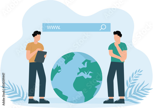 Dobrovolníci čištění planety Země zeměkoule sbírání odpadků, zalévání rostlin, ploché vektorové ilustrace. Zachraňte planetu, životní prostředí, ekologii, ochranu přírody.