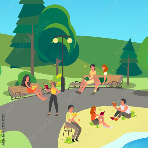 Dobrovolníci sbírají odpadky do pytlů v městském parku nebo v lese. Lidé čisté prostředí koncept vektorové ilustrace. Save planet ekologie plakát.