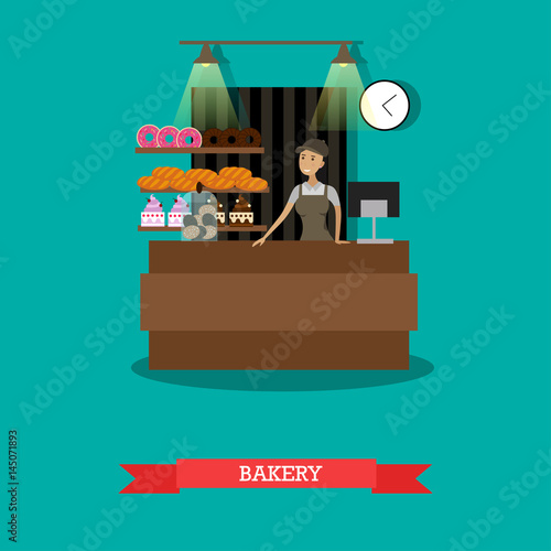 Vektorová ilustrace číšníka drží zásobník s cappuccino a sušenky. Kavárna zaměstnanci plochý styl designu.