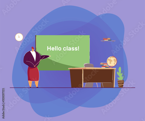 Vektorová ilustrace servírky, která přijímá objednávku od návštěvníka, sedí u stolu a drží menu. Interiér kavárny. Plochý design.
