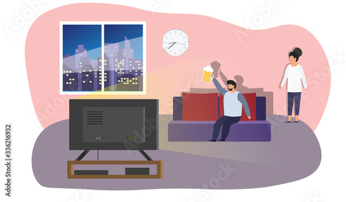 Vektorová ilustrace softwarového konceptu řízení skladu. Věžový jeřáb uvedení lepenkové krabice na velkých laptopů, drobní lidé pracovníci.