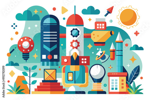 Sklad skladování app concept vektorové ilustrace. Věžový jeřáb uvedení kartonové krabice na velkých mobilních telefonů police, drobní lidé pracovníci. Mobilní aplikace pro správce skladu.