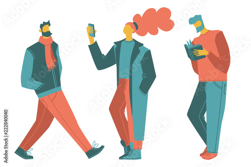 Muž a žena dobrovolníci sbírají plastové lahve do pytle na odpadky, vektorová plochá ilustrace izolovaná na bílém pozadí. Sběr a třídění odpadů pro recyklaci, čištění ulic, dobrovolnictví.