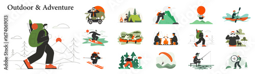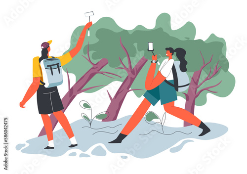 Dva muži popeláři sbírají pytle na odpadky plné domácího odpadu, vektorová plochá ilustrace izolovaná na bílém pozadí. Sběr odpadků, park a čištění ulic.