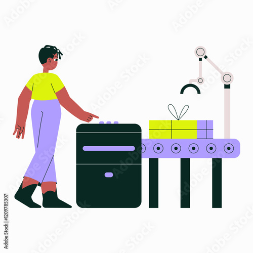 Vektorová ilustrace malých lidí, kteří sbírají, třídí a házejí odpadky do velkých různých barevných recyklačních odpadkových košů. Koncept Segregace a recyklace odpadu pro webový banner, webovou stránku atd.