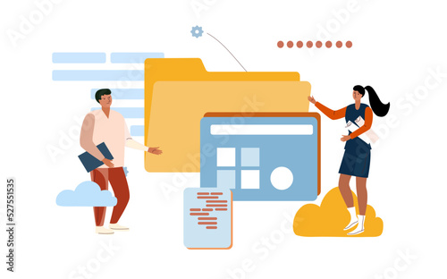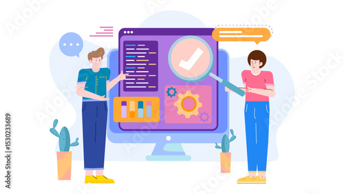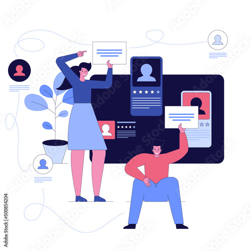 Třídírna odpadů s dopravníkovou linkou a pracovníky, vektorová koncepce ilustrace. Třídírna tuhého komunálního odpadu koncept pro webový banner, webové stránky atd.