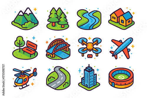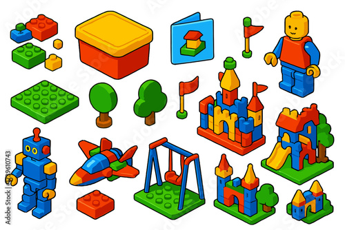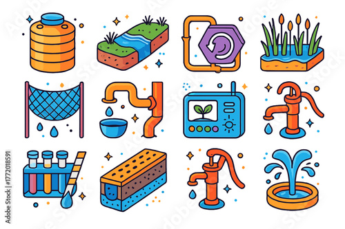 Vodní park slide set, ploché vektorové izolované ilustrace. Akvapark pokladna a atrakce. Aqua park spirála trubka, trubka, tobogán kolekce. Letní venkovní vodní zábava, zábava.