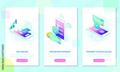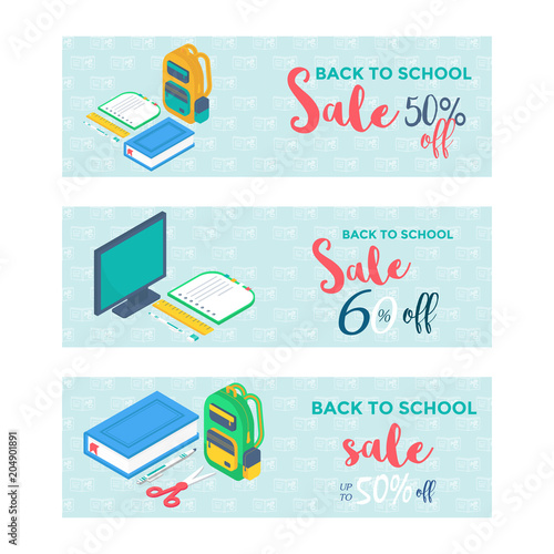 Vodní park vektorové ploché izometrické horizontální banner set. Vodní atrakce, relaxační zóna a dětské oblasti koncepční designové prvky pro web a tisk.