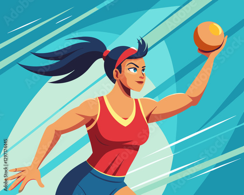 Vodní pólo hráčky v akci koncepce vektorové ilustrace. Dámské plavání a vodní sporty. Vodní pólo tým hrát hru v turnaji. Sportovec útok brankář s míčem.
