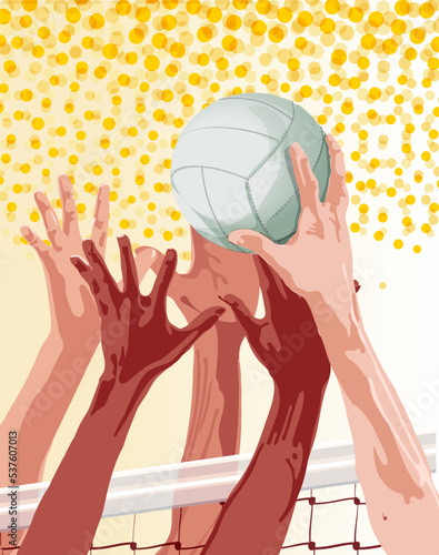 Vodní pólo hráči v akci koncepce vektorové ilustrace. Plavání a vodní sporty. Vodní pólo tým hrát hru v turnaji. Sportovec útok brankář s míčem.