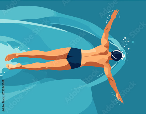 Vodní pólo hráči v akci koncepce vektorové ilustrace. Plavání a vodní sporty. Vodní pólo tým hrát hru v turnaji. Sportovec útok brankář s míčem.