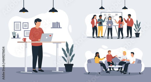 Vektorová ilustrace malých lidí, kteří šplhají po žebříku, aby zašroubovali velkou žárovku. Cesta k úspěchu, vedení, kariérní rozvoj, koncepty týmové práce pro webový banner, webovou stránku atd.