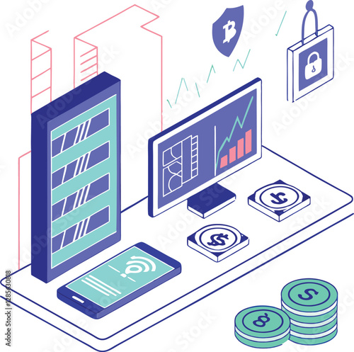 Web analytics koncept ploché vektorové ilustrace. Izometrický přenosný počítač s grafy, grafy na obrazovce. Analýza dat, statistiky webových stránek.